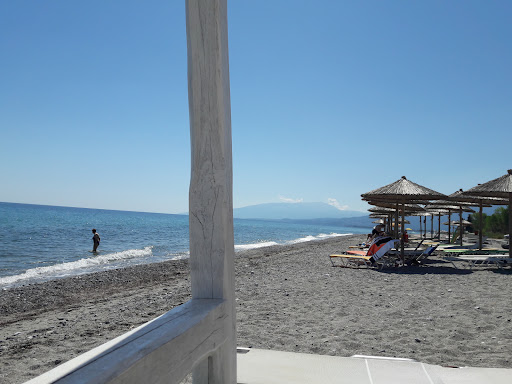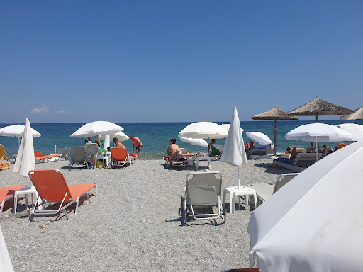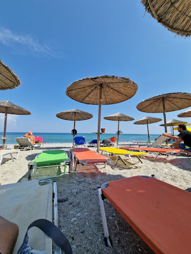 Read moreNice quite place with mountain Olympus from the back and additional big 3 comfy double sunbeds. Beach has rocks which will make your entrance to sea like 10min of gym. Girls will find it more difficult than guys:) Find some slipers for swimming;) Chillout music is nice for relaxing if the waves are not to loud/big. First picture is fake ;) It wasn't there when I came in...