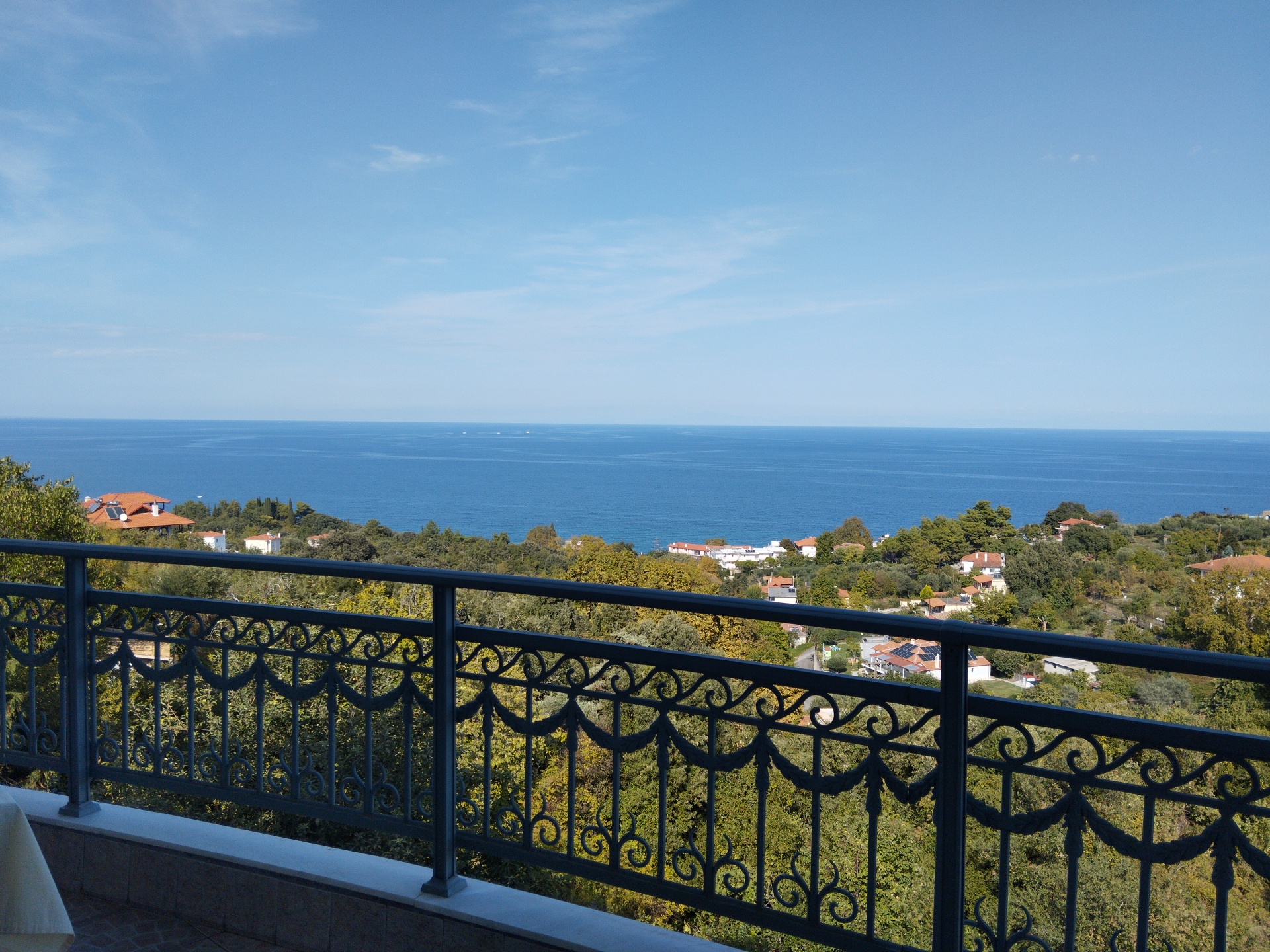 Decent view ( NOT "breathtaking"). Not TRADITIONAL Greek: we kept discussing if they brought us lamb or chicken or duck, because it was flavorless.... Kinda boiled. Fish nearly as bland as the lamb.... Salad while not bad, certainly was NOT traditional. Service was polite, timely and overall pleasant minus big difficulties with English. Music was on unintrusive level. Menu has most of it translated. surprisingly neither water nor bread cost anything. But it tastes accordingly. Bottom line: more expansive than the surrounding, not justified, but calm surroundings and above average view Would not repeat unless everything...
