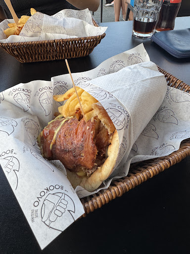 Food: food is, decent, nothing too remarkable but nothing bad either, it's a solid 4 if you are getting something around the price of 5€,us personally we got a stuffed burgermeat in bread. It's juicy, filled with vegetables but meat was rather questionable choice, it has a specific scent which I don't like as much, however overall it's decent! Although I have 2 tips for you, first if you buy a burgermeat, you will get 2 long burgers in a bread or a pie (if course portion is a different story) not your regular American style burger, those are 10€. Also for the love of God do not remove French fries! They are used to contain the beast within! Once removed insides start becoming outsides and outsides start turning into insides. In other words everything that was once in starts leaking fries are used as a replacement for a bun.