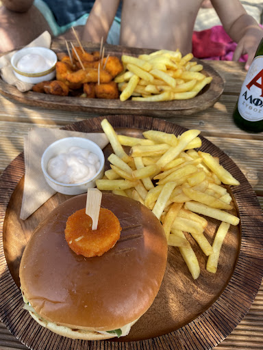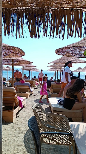 Read moreΑρχικά να πω ότι πήγαμε 15 Αύγουστο και φτάσαμε 10.20 το πρωί στην παραλία και ήταν ήδη σχεδόν γεμάτο το μαγαζί. Στόχος ήταν να αξίζει το μαγαζί ώστε να μείνουμε όλη μέρα. Έχει άνετες ξαπλώστρες, όλες ξύλινες με μαξιλάρες ( οι ξαπλώστρα οι απλές που μπορεί να δείτε σε άλλες κριτικές είναι από το δίπλα μαγαζί που είναι μεσοτοιχία.) Δεν υπάρχει χρέωση για τις ξαπλώστρες είναι ότι πάρεις. Οι τιμές είναι πολύ πολύ κομπλέ : φρεντο 3,5 ευρώ μαζί με νερό και κοκτέιλ από 7-8 ευρώ όπως και τα φαγητά. Πήραμε τσιζμπεργκερ και κοτομπουκιες και πίτσα μαργαρίτα . Ολα σε τιμές 7-8-9-10 ευρώ και πολύ καλές μέρες και για παραλία είναι πολύ κομπλέ το φαγητό. Έχει κατάλογο για κοκτέιλ ( και basic αλλά και signature δικά τους που είναι πολύ ωραία) Μετά τις 3-4 το μεσημέρι το μαγαζί έβαλε μουσική και πάνω στα τραπέζια γινόταν χαμός αλλά με πολύ ωραίο vibe. ( μπορεί και λόγω ημέρα , δεν ξέρω εάν αυτό είναι η καθημερινότητα τους) Ακόμη και με γεμάτη παραλία δεν ένιωθες ότι δεν έχεις που να πατήσεις ή που να σταθείς. Υπήρχε χώρος αρκετός ανάμεσα στις ξαπλώστρες και στην θάλασσα ο κόσμος ήταν ξαπλωμένος και από όλες τις ηλικίες .