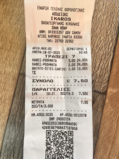 Read moreΚαθίσαμε διότι είχαμε λίγη ώρα να περιμένουμε ώσπου να έλθει το λεωφορείο μας. Εκτός του ότι για πρώτη φορά στην Ικαρία ήταν γρήγορο το σέρβις (ΝΑΙ!!),τα ικαριώτικα χορτοπιτάκια τους ήταν ότι καλύτερο φάγαμε στο νησί, και η φέτα στο φούρνο ήταν πολύ ντελικάτη και αρωματική. Και όλα αυτά ενώ το μαγαζί είχε πολύ κόσμο....