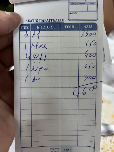 Read moreSiamo stati qui in attesa che partisse la nave per l’Italia. Taverna a tavola calda con piatti tipicamente greci. Il più sono già pronti e tenuti in caldo e quindi è molto veloce mangiare ed andare via. La taverna ha posti interni ed esterni, molto carino il patio esterno, caratteristico. Il locale non si mostra di buona e bella qualità, gli arredi sono fatiscenti. In quattro abbiamo preso pasticcio e 2 moussaka, mentre per la bimba un piatto di pasta con sugo De Cecco. La pasta, spaghetti, erano precotti, quindi li sconsiglio. Il pasticcio e la moussaka invece molto buoni. Servizio è stato veloce, come abbiamo richiesto, avendo la nave in partenza, ma i sono alcune note negative. La prima è che ci hanno portato il pane, senza richiederlo, e senza saperlo ce lo siamo ritrovato nel conto. Un po’ di pane 4 euro, quindi se non lo volete dite alla cameriera/cuoca/cassiera di riportarlo indietro. Comportamento scorretto. La seconda è L’acqua gassata, bottiglia da 33cl costa 3 euro, davvero tanto essendo praticamente un bicchiere d’acqua. Non ho fatto storie, andavamo di fretta. Prezzi nella media greca, quelli che fanno ai turisti, forse con gli stessi si può mangiare in un locale tenuto meglio. Moussaka e pasticcio 11 euro a piatto. Lo consiglio per una...
