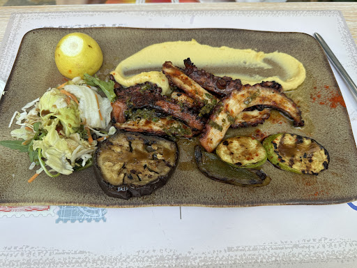 Read moreWe walked by Ostria looking for a different restaurant, but returned quickly to see the menu as Americans traveling with our Greek friends to see if they could serve us since there were many reserved tables. The menu looked very good and the prices seemed reasonable, but we opted for the Dorado fish which while was much higher in price could have been enough for 3 people. It also came with grilled vegetables. We also ordered the avocado salad. Everything was so delicious my wife and I managed to finish it. Our Friends ordered Osso Buco and a green salad. Sotiris the owners son was so friendly. He sent us on the house white wine for 4 and a small plate of homemade tzatziki sauce and eggplant dip to spread on the generous portion of grilled bread with olive oil and oregano. At the end of the meal we were presented with prickly pear, also on the house. All in all we had a lot of food, wine and water for 93 Euros before our 20% tip and while it was our most expensive meal in Greece for 4 people it was far and away the best meal we had in 10 days and we will dine there again tomorrow night before heading out early for Athens to get ready to head back home the next day. At the end of the meal we met Sotiris mother Katerina Rossi who does the cooking. She has owned the restaurant for 35 years, so to survive this long you know she is doing something right and at the end of our long conversation she gave me a ceramic pomegranate as a gesture...