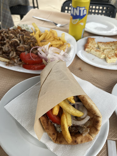 Read moreWe had a plate of gyros each. One would have done the two of us for lunch. There was meat, pitta, tomato, red onion, tzatziki and chips