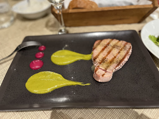 Me and my partner were staying in Frikes for a couple of days and one night near the closing of the restaurant we went in to get a bottle of water as it was scarce at the time, the manager without second thought gave it to us without even asking for money. The next day we went and sat at a table, the waiter kindly informed us that some of the dishes were sold out as it was near the end of the day. We ordered two exceptional dishes, one of them was Lamp Fillet with Garlic Sauce and the other was Rib Eye with Chimichurri Sauce (I ordered Medium Rare). As a Greek with foreign relations I understand that for some people Lamp meat might be challenging to consume because of the strong taste and texture, but this Lamb will please the pickiest of eaters, the Seasonings combined with the Garlic sauce was the perfect combination to bring out an elegant taste of lamb, but even without the sauce this dish brought back childhood memories. Even though Lamb Meat can sometimes be a bit chewy the perfectly sliced fillet guarantees a smooth texture. The Rib Eye was cooked to a perfect Medium Rare and combined with the Chimichurri was an easy 10/10. Both dishes were served with a large amount of freshly cooked French Fries. Even if I didn't explore the vastness of their menu I can see the care for every single dish. I highly suggest you pair your courses with a Fine Wine and don't be afraid to ask the waiters for anything, they are more than willing to give you the best experience. The bill was 52 euros, I know it might seem a lot for some but I believe for this quality and care for the food the price is non negotiable. I know for a fact I will be...