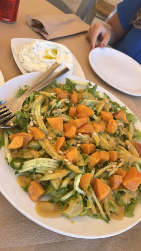 We chose to sit here to try the place, and overall the food was good. The French fries and souvlaki were very nice, though the souvlaki was slightly burnt on the sides. The ntakos was decent, though not particularly memorable, and the chicken with purée and orange was also fine.