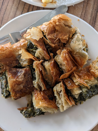 The spinach and custard bougatsas are great and if you're lucky you get them fresh out of the oven while they're still flaky, warm, and crispy. The custard is not super sweet making for a much more pleasant bougatsa when topped with sugar...