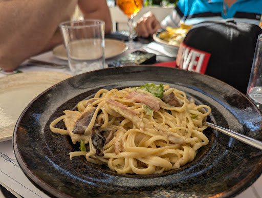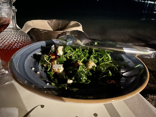 We literally were seated by the sea, because the place was full! The menu has a great variety of plates, we ordered linguini with prosciutto, cannelloni, a salad and half lt of wine, we ended up paying 35€ which was fair for the quantity of the plates! The main plates weren’t equally good in taste, I enjoyed my linguini while my company found the cannelloni bland.. I totally recommend ordering a salad as they have many ingredient combinations and you will find something you enjoy. Overall, I would eat...