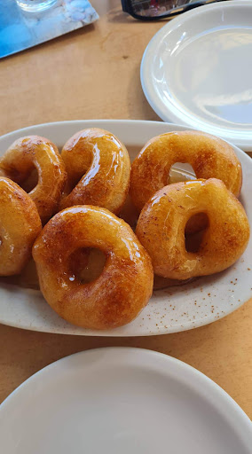 Αγενέστατοι, σχεδόν μας έδιωξαν από το μαγαζί. Πήραμε λουκουμάδες (δεν ήταν καλοί ) και παγωτο μηχανής που ήταν εξίσου άνοστο. Μας είπαν να καθίσουμε να περιμένουμε για να παραλάβουμε τους λουκουμάδες και εν τέλη όταν μας τους έφεραν ζητήσαμε να κάτσουμε να τους φάμε εκεί, στην αρχή μας είπαν εντάξει και περιμέναμε να μας φέρουν πιρούνια εν τέλη ήρθε μια κυρία και μας είπε να φύγουμε γιατί έκοψε την απόδειξη πακέτο. Την ρωτήσαμε αν έχει διαφορετική χρέωση και μας είπε ναι, αμέσως προταθήκαμε να πληρώσουμε την διαφορά. Μας είπε ότι δεν γίνεται και να φύγουμε. Έτσι αποχωρήσαμε με κακή εντύπωση. Πέρα από αυτό άργησαν παρά πολύ να μας πάρουν παραγγελία και μας αγνοούσαν ενώ κάθονται στο διπλανό τραπέζι. Η ώρα ήταν 10.30 σε δρόμο με κίνηση και κόσμο...