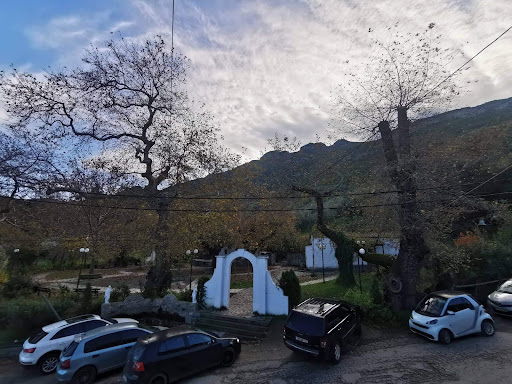 Pretty funky - went there in off season and in bad weather, so unfortunately we had to sit inside, but the platanus garden is stunning. Due to lack of tourists, lots of food was unbelievable and waiter didn’t speak English well. BUT we just ordered a few salads and spreads, which were delicious and local. Cheese rolls (best we had in greece) and saganaki. And the owner even gave us complementary pork souvlaki, which was delicious with a smoked taste from wooden oven. We left the restaurant totally stuffed...