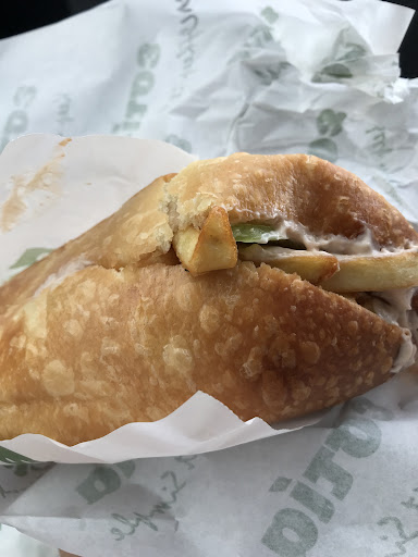 Read moreI opted for the roasted pork bowl (chicken and lamb also available), with brown rice (pilaf available), hummus, spicy feta, banana peppers and cucumbers. It was large and delicious. For a combo it's about $10.50 -- but you can only combo a wrap I believe (drink and fries). The fries are good, thick.The outdoor seating is nice in the spring/summer. The pop machine offers many...