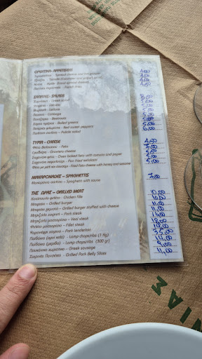 Επισκεφθηκαμε το κατάστημα ενα κρύο Σάββατο του Μαρτίου. Αμέσως μας έκανε εντύπωση η μαξιμαλιστική προσέγγιση στη διακόσμηση. Άνετα ο χώρος θα μπορούσε να λειτουργήσει σαν λαογραφικό μουσείο, καθώς διαπιστώσαμε πως τα αντικείμενα στους τοίχους αποτελούσαν τον βασικό εξοπλισμό του Έλληνα αγρότη και κτηνοτρόφου του περασμένου αιώνα. Στα της εξυπηρέτησης, αμέσως μας προσέφεραν νερό και καλωσόρισμα, μαζί με τους καταλόγους. Τα φαγητά (αγριογουρουνο στιφάδο και μπριζόλα χοιρινή) δεν άργησαν, ενώ προηγήθηκε η πολιτικη σαλάτα. Η μπριζόλα πολύ σωστά ψημενη, χωρίς υπερβολές σε μπαχαρικά, μαρινάδες και φανταχτερές γαρνιτούρες, σε μια τίμια ποσότητα όπως φαίνεται στην εικόνα. Η επιλογή του αγριογουρουνου ήταν σωστή, καθώς πρόκειται για ένα εξαιρετικό πιάτο, καθόλου βαρύ για το στομάχι, με αρκετή ποσότητα κρέατος, κρεμμυδιών και σάλτσας. Ασφαλώς ζεστάθηκε εκείνη τη στιγμή, αφού όπως είναι φυσικό, τέτοια πιάτα μαγειρεύονται από νωρίς, αλλά αυτό δε σημαίνει πως το κρέας δεν κράτησε τα υγρά του και τη νοστιμιά του. Τις τιμές δεν τις σχολιάζω, καθώς έχω αναρτήσει και τον κατάλογο. Πρόκειται για μια από τις καλύτερες επιλογές στην ευρύτερη περιοχή. Θα επιστρέψουμε σίγουρα. Στα θετικά, το ότι μας είδαν μοτοσυκλετιστές και γνωρίζοντας πως έχουμε αρκετό δρόμο μπροστά μας μέχρι να φτάσουμε στα σπίτια μας, ήταν πρόθυμοι να μας προσφέρουν κάτι...