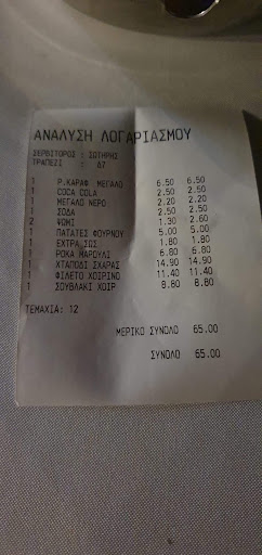 Read moreAs for the food we can't complain, it was delicious. Indeed 5 stars We went to sunbath on the beachfront where AMOS has its sunbeds. They charge you 20 € per person ( it's given back to you as food or drinks). We were 5 adults and two kids. The menu wasn't given to us, the menu that was offered online would never appear ( half of it) because the Internet was very very slow. The girl that served us Georgina half explained our questions. Each of us memorised the prices in the head. We ordered coffees and drinks before a d after the food. As in Greece, when coffee arrives it has a small bottle of water with it for free. We were never told that we would be charge for it neither asked if we wanted it since it wasn't served for free. 1.50 euro. Coffee 6 euros. So, 7.50 euros for a coffee. When we asked for the bill before leaving, it was 171 euros. No receipt was handed to us, our friend that spoke greek had to ask for it to be given to us. Even then the receipt was so badly printed that the first three or for letters of the items were not printed. Ever single item we ordered was added 50 cent to 1.50 euro up from its original price. As for non Greek speakers it would be very hard to understand what's written on the receipt they get. We were not allowed to use the tables, though they were almost all emptied. Before you order ( if you're using the sunbeds) please do make sure you get a menu in your hands, screen shoot it with your phone and then order or at the end...