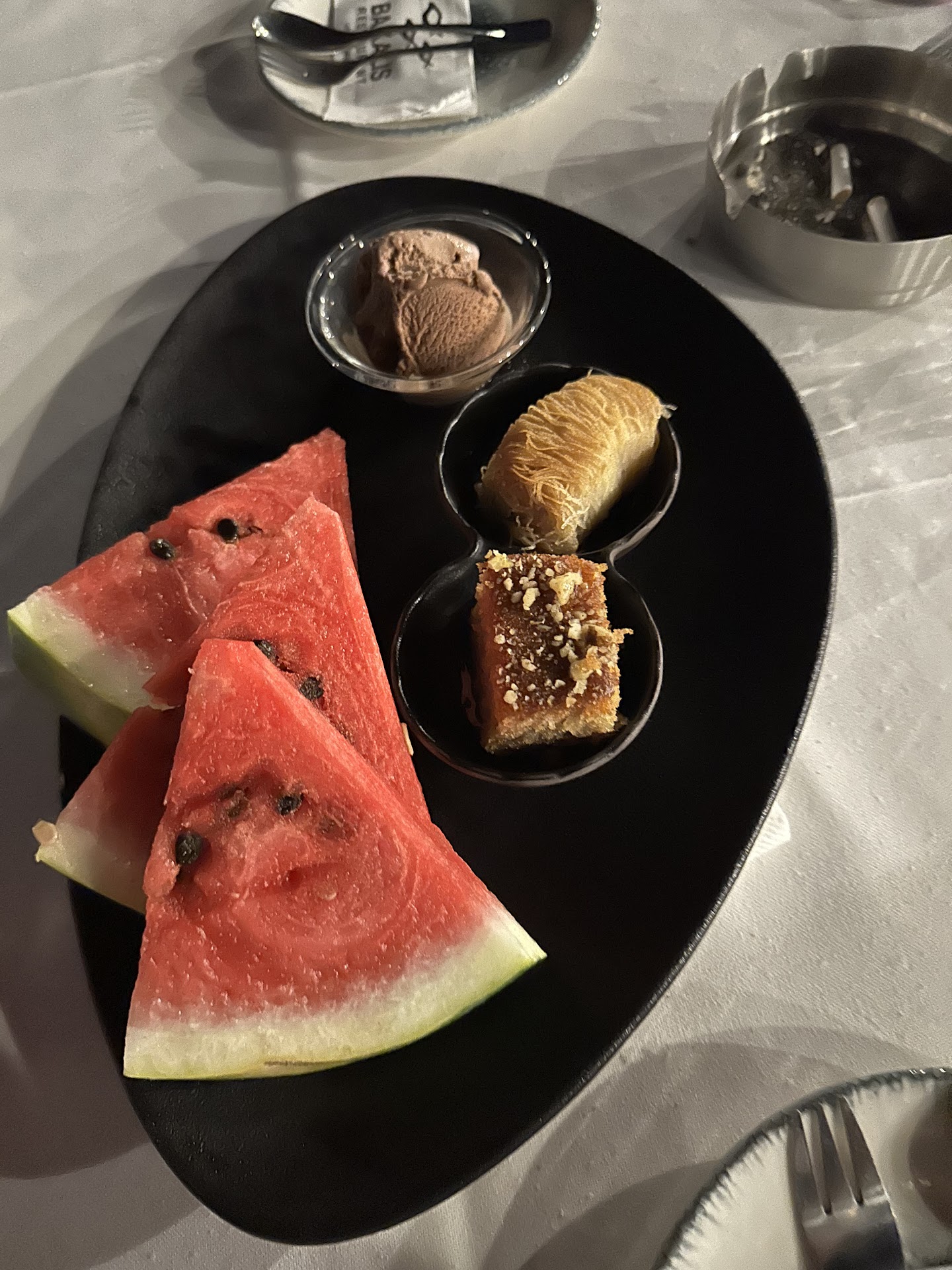 The Bolognese pasta came in a generous portion and was packed with ingredients. The pasta itself was slightly firm, cooked al dente, and very filling. As a nice final touch, complimentary dessert and a fruit plate were served at the end of the meal, adding a thoughtful and colorful close to the experience.