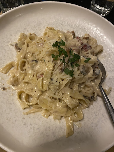 Read moreI prefered carbonara and white wine. Carbonara was not original recipe, it consists of mushrooms too which I liked it. Unfortunetly I didn’t like the “bacon” that they used because it taste was not like a bacon but kind of sausage. Also, our wine is served very lately we were about to finish our plates. As I understand they didn’t have cold one of what we preferred but they should have told us maybe we could change it with another wine. Costs: carbonara 12 euros , 1 bottle of wine...