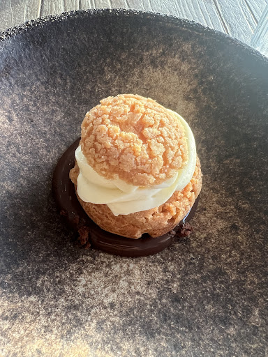 Read moreWe ordered lamb cutlets and sea bream, but they were unbearable to eat because of they were too grilled. The complimentary bread was nice though. Don’t order the vegan desert cremeux aux noisettes because you won’t see or taste any coconut flavor. In desert’s description it says coconut sorbet, however it wasn’t there at all and the waiter told us that apparently coconut sorbet is just one of the ingredients. Our male waiter was rude. The...