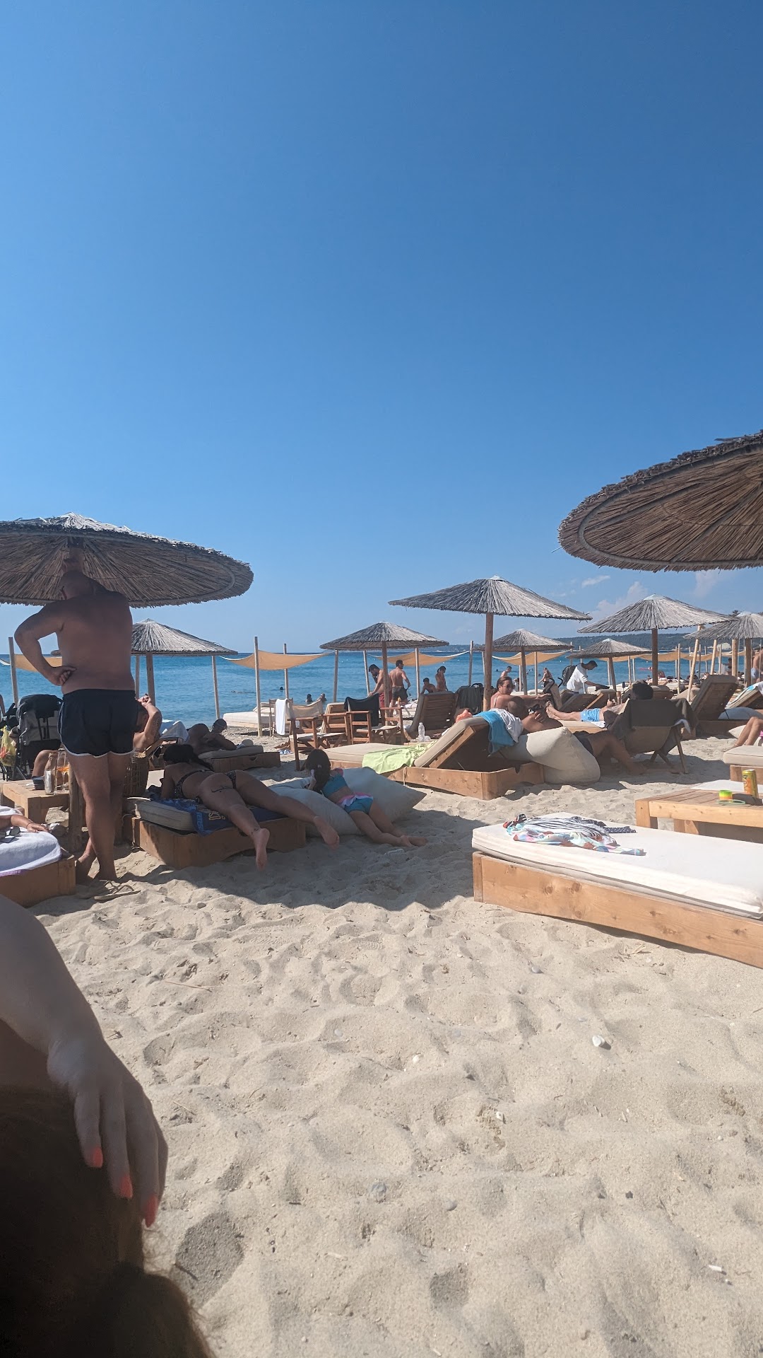 Read moreSo... not sure how the last google reviews that I did read before I made a reservation here all 5 stars, and almost the same , that food is Incredible that service was the best in whole Greece, but not even close . I know some people are different and different taste in food service and everything but belive me 17 years of Greece and each year atleast 14 beach bars this is not even close to be top 5 in Kassandra arm. Umbrella are old outdated barely any shade half of sunbed is in th3 shade ( if you need any) they made some super nice updates at the restaurant area and bar and entrance but everything else is old. They have decent prices same as most of the beach bars in the area 50-60€ consumption per umbrella . Now the service we got George as our server most of the time he needs to be hunted down to order and when we came on the manu they had fresh juices and when I ordered one he almost lost it and raised his voice " no fresh no fresh!" Then when I asked about lemonade he rolled his eyes like wow just lemonade ( by the way that was the starter and a cappuccino) then I asked for shisha he said " 5 minutes it's a different guy" , I said ok no problem. After 30 minutes my wife asked again he said 5 minutes. Then shisha guy comes makes the shisha and never left utensils to work on charcoals or anything never switch round of charcoals but he made sure to tell me about the bag of tips connected to th4 hookah. On th2 2 x club sandwich they bring you 3 x but both portions was missing the bread for 1 and sub-par taste. Anyway maybe some other people have better taste but for me they have a lot to learn in being customer oriented and be more attentive. Bill 155€ tip 20€ if he was more attentive and keep asking us what we want bill could easy reach 300€ and tip 60 but I am in vacation not in hunting of server game 😉 Do better and update the beach to match the bar and restaurant...