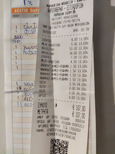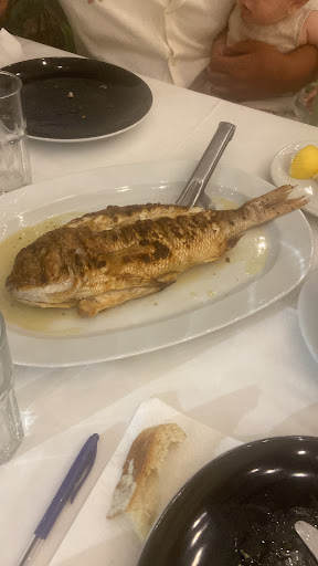 Read moreLocation: The restaurant is located at the main street of the village. However, in the evening the traffic is not disturbing too much. The terrace is nice to sit during the summer days. Only the parking cars are a bit annoying because the headlights light up the whole place each time a car arrives or leaves. Service: The staff is inattentive to say the least and couldn't care less about your existence or any requests made. When we ordered the food we explicitly asked for the Greek salad and the fries to be served with the fish and got a slightly annoyed reaction when we asked if our request had been understood. However, first came the tzatziki, the Greek salad, one of the three fish and the fries. We then had to wait quite a decent time for the rest to come and in the end quite some time to get the bill. The fact that the table next to us (with Greeks) arrived later, got served earlier, got their bill quicker and left earlier is just the icing on the cake. Not forgetting that one of the forks was clearly not washed properly and sticky. Food: The food was OK. Nothing special to say about it. Previous reviews were raving about the fish, which is why we opted for this place, but it was by far not the best fish we had during our vacation. The prices are reasonable. Some people seem to get desserts....