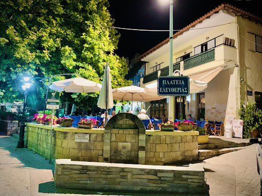 Amazing place to drink coffee, ouzo with meze (ouzo finger food snacks), cold beers and to taste delicious pizza and toasts all day long. The environment is so relaxing and the old plane tree offers very thick shadow. Τhe sound of cicadas is peaceful. Prices are very good and the staff is very friendly and polite. Definitely...