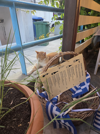 The real star of the evening? Their house white wine (Malagouzia 2024). Crisp, clean, and hands down one of the best local wines we’ve tasted in Greece. We came in for a glass… and ended up polishing off the bottle!