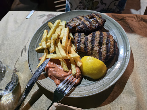 Read moreIt was pouring with rain and thunderstorms in August so reached out to our nearest Taverna to fill our tummies after a day stuck inside. There was only a table outside under the awning available (not because it was full but because it really was the only dry table available) but the owner was so accommodating to us as a family of 3. The mixed grill for 2 was unapologetically satisfying with a great tomato tapenade, thick gorgeous tzatiki with pitta, souvlaki that was kindly wrapped up for takeout for our daughter for later to finish and 2 quarts of wine to satisfy mummy with little comp magnums to finish left a rainy day feel a little bit brighter afterwards. We can imagine how lovely it is in the courtyard outside the church in...