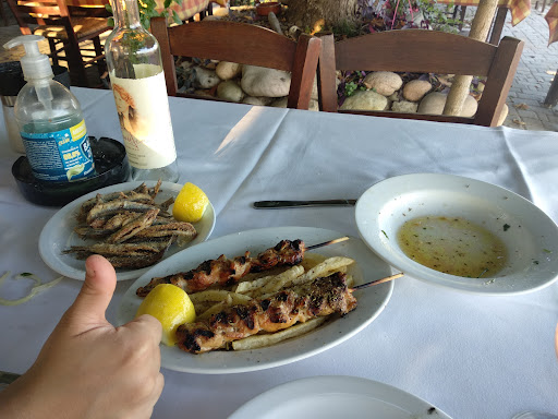 We just had a great dinner in this tavern (wife and 1 yo kid). The food was delicious, we tried grilled salmon, fried shrimps and fried gavros, beetroot and Giorgos salads. I can tell without any exaggeration, that we had our best fried shrimps here ever! If you want to try traditional taste in a traditional ambient with attentive service under old trees and vine-arbour, this is the place! It’s also family friendly, our child had a great time here, also tried every kind of food with us! It was also good to see, that many locals came to spend time and have their...