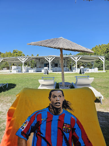 Read moreVery nice place, a calm beach and they had everything: sun beds starting from 5 euros consumption per person; changing booth, bathroom, outside shower to wash off the salt. Some beds are 35 euros so look carefully before choosing which one you would like. I would prefer if they had only sand everywhere cause the grass has spikes that make it impossible to walk without shoes or sandals. The beach itself is covered in rocks which is painful to talk too, but the water is clear and has sandy bottom. A lot of big fish to see if you like snorkelling. Calm and relax music that doesn’t take over, that was another plus. The drinks are kinda expensive but just like everywhere else, the cheapest being 9 euros and the most expensive being 12. Beer 5 euros and up. No waves, very nice view to other peninsulas in the background. For very small children it can be hard due to the stones and the spikes on the grass, but for me it was a very good...