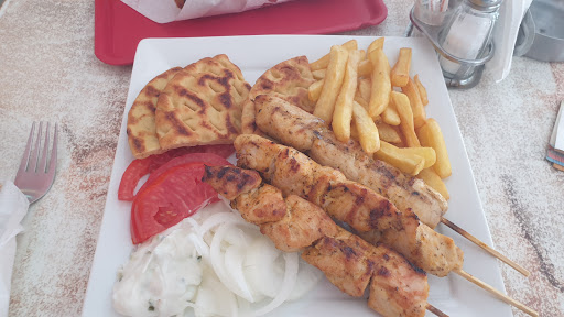 Disappointed with this place. We ordered a gyros plate (€8) and a fish dish (€9). The gyros took over 30 minutes to arrive and came with a tiny portion of meat, a spoonful of tzatziki, and very little salad — very bland overall. The fish was served with just a few slices of tomato and no side dish at all. For that price, at least some fries or salad should be included.