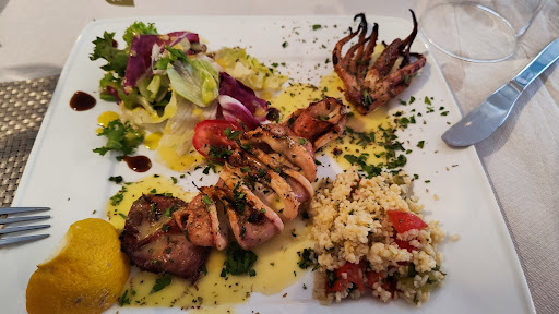 Read moreAgain i wonder how this restaurant got 4,7 stars with more than 1.000 reviews. It is not even close. Service is fast and touristy. Prices are normal for this place. I've got dirty empty plate for a starter. Waiter changed it quick and with no problem. Service was quick. Food is below average to average. Tzatziki was OK, but still not as good as it can be in Greece in general. Zucchini balls average, sauce with it below average. Both gyros plates were hardly for eat. No taste meat which was sliced and grilled on hot plate. Definately not prepared classic style. My grilled kalamari (squod) were super chewy with a strange (not fresh) taste. Salad and rice as side dish were minimalistic (hardly for one spoon). The best food here were bread (pita) and french fries. Quick, almost fast food style restaurant with poor food quality, prepared for as mich tourists as they can get each day. Kids left their food more than half not eaten. The worst restaurant we ate at on our 3 weeks trip in Greece. Taverna?...