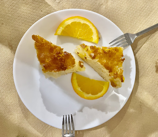 I would recommend the wine leave rolls with tzatziki, the chicken with peppers in lemon sauce and a side of fresh baby leaves salad - you won’t be disappointed! The white wine is so rich and has that rich fruity taste. And, of course, the orange sponge dessert that was served on the house that evening- oh, my…that was something I would never forget. I never had such a good orange cake before (and I had many believe me - I have a sweet tooth :)
