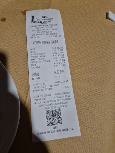 Read moreGrill master chef. Cooks the gyros on a vertical charcoal grill! We had a huge steak, liver and on seeing the gyros grill a 1/2 portion of beef gyros. All perfectly cooked and delicious. Finished with fries, cucumber and tomato salad and 1/2lt of very good white wine. Bliss! Don't feed the cats, they'll jump on the table otherwise! Bill was...