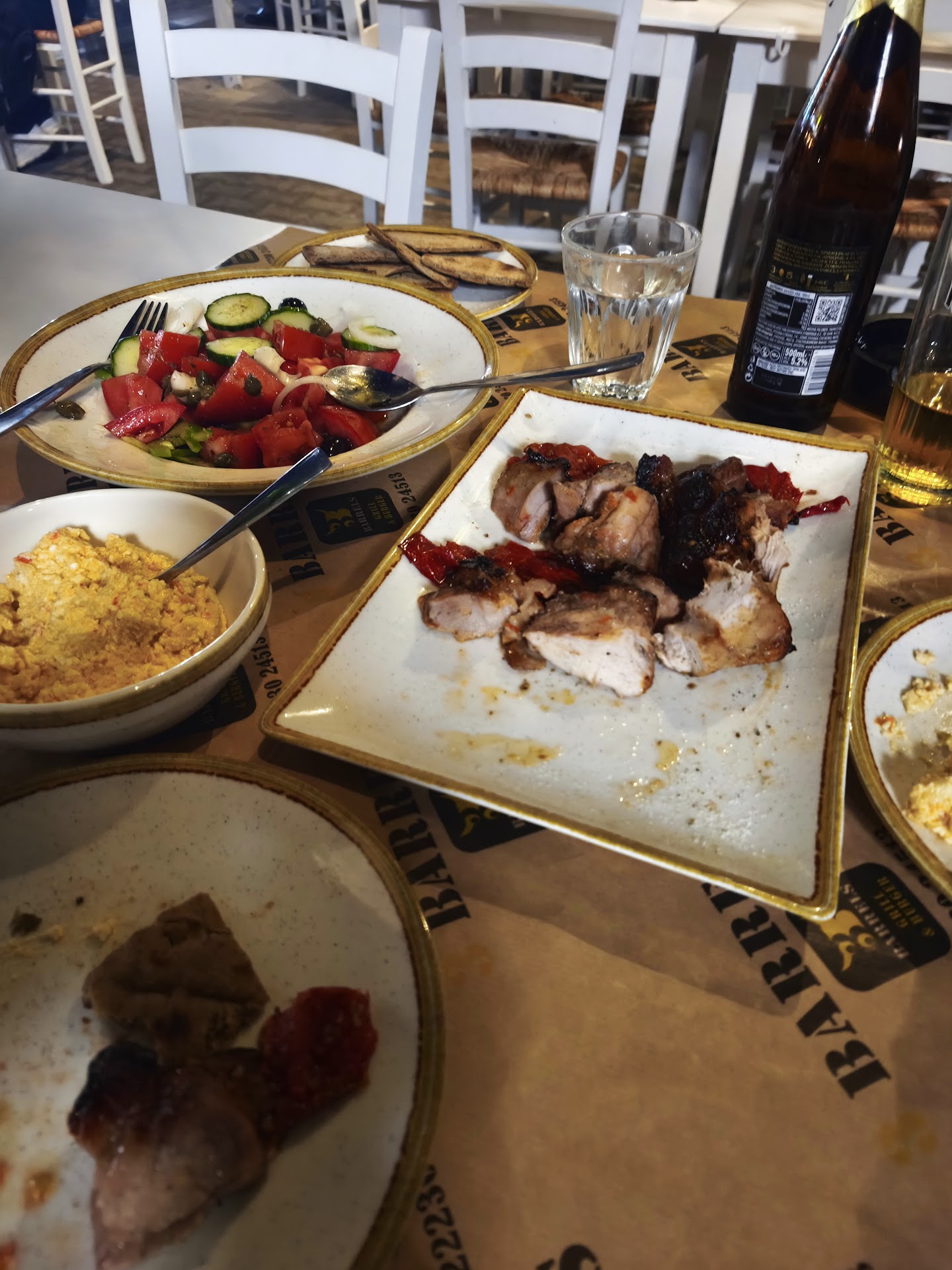 Το φαγητό ήταν συνολικά καλό, αν και οι πολύ υψηλές αξιολογήσεις που είχα διαβάσει δεν ανταποκρίθηκαν πλήρως στις προσδοκίες μου. Θα τοποθετούσα την εμπειρία στις 4 από τις 5 αστέρες, ωστόσο σε ορισμένα καλαμάκια κοτόπουλο το ψήσιμο ήταν αμφιλεγόμενο, στα όρια του επαρκούς και ασφαλούς για κατανάλωση.