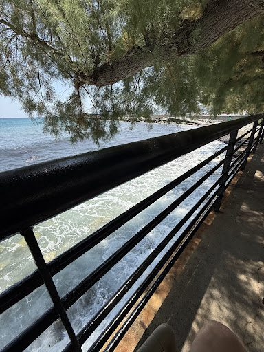 Ένα καθαρό, ευχάριστο μέρος, για να ξαποστάσει κανείς από τη βόλτα του, στην παραλία της Κύμης. Τραπεζάκια δίπλα στο κύμα!! Να ακούει κανείς τον παφλασμό της θάλασσας και να ευχαριστιέται η καρδούλα του.. Ακούει βέβαι και τα αυτοκίνητα που περνάνε δίπλα… Ένα μικρό πρόβλημα είναι ότι τα αλμυρίκια δεν κάνουν τόσο παχειά σκιά, οπότε, αν δεν αγαπάτε τον ήλιο, σε ώρες κοντά στο μεσημέρι, ίσως να πρέπει να...