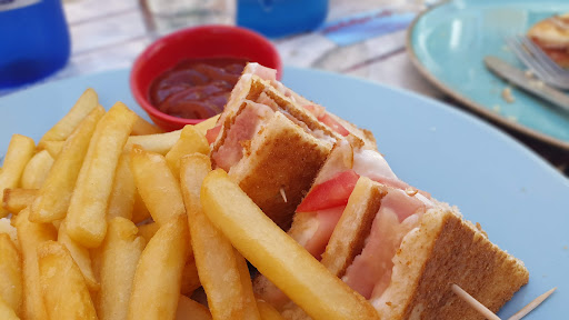 Read moreΠραγματικά, απ' τις χειρότερες εμπειρίες στο νησί. Καθίσαμε και ήρθαν για παραγγελία μετά από 10 λεπτά. Δεν υπήρχε κανένας στην υποδοχή και γενικά στο πόστο, ώστε να ελέγχει τους πελάτες (αν έρχεται κανείς, αν θέλει να ζητήσει κάτι ακόμα κτλ). Παραγγείλαμε φυσικό χυμό και 2 πιάτα με τηγανητά αυγά, μπέικον, λουκάνικα, πολύσπορο ψωμί και τοματίνια. Πλήρης αποτυχία! Τα αυγά ήταν κρύα, τα τοματίνια δήθεν ψημένα αλλά είχαν καρβουνιάσει, σχεδόν τα χτυπούσες με το πιρούνι. Το λουκάνικο φάνηκε κομπλέ, το μπέικον ήταν μια λωρίδα και το χειρότερο... Το ψωμί ήταν ΜΟΥΧΛΙΑΣΜΕΝΟ. Το ψήσιμο μπορούσε να σε παραπλανήσει, αλλά ήταν τόση η μούχλα που δεν κρυβόταν. Μόλις το παρατήρησα το είπα αμέσως στην σερβιτόρα (ευγενική, σχετικά, παρεμπιπτόντως) και, αφού ενημέρωσε την κουζίνα, μάς πληροφόρησε ότι το τραπέζι μας ήταν κερασμένο. Μπορεί να ήταν ένα μεμονωμένο ατυχές περιστατικό για το μαγαζί μπορεί κι όχι, αλλά, σίγουρα, ήταν δυσάρεστη εμπειρία για εμάς...