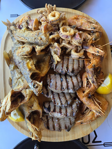 To begin with, the restaurant doesn't actually feature seafood in its regular menu, which was a surprise. Upon asking, we were told they could offer a seafood plate — but what we received was quite different from what we had seen in the pictures and reviews. There was no tuna as described; although we were told another fish fillet would be included, it never came. The plate consisted only of three fried whole fish, shrimp, and fried calamari — no grilled options, no fillet, and everything deep-fried. The portion was generous and easily enough for two people, but the heavy frying took away from the seafood flavor.