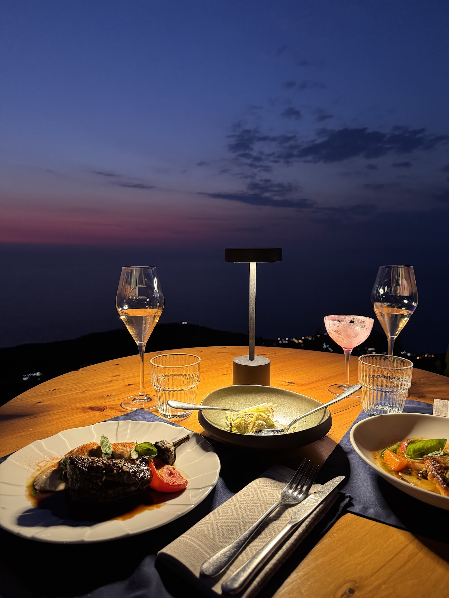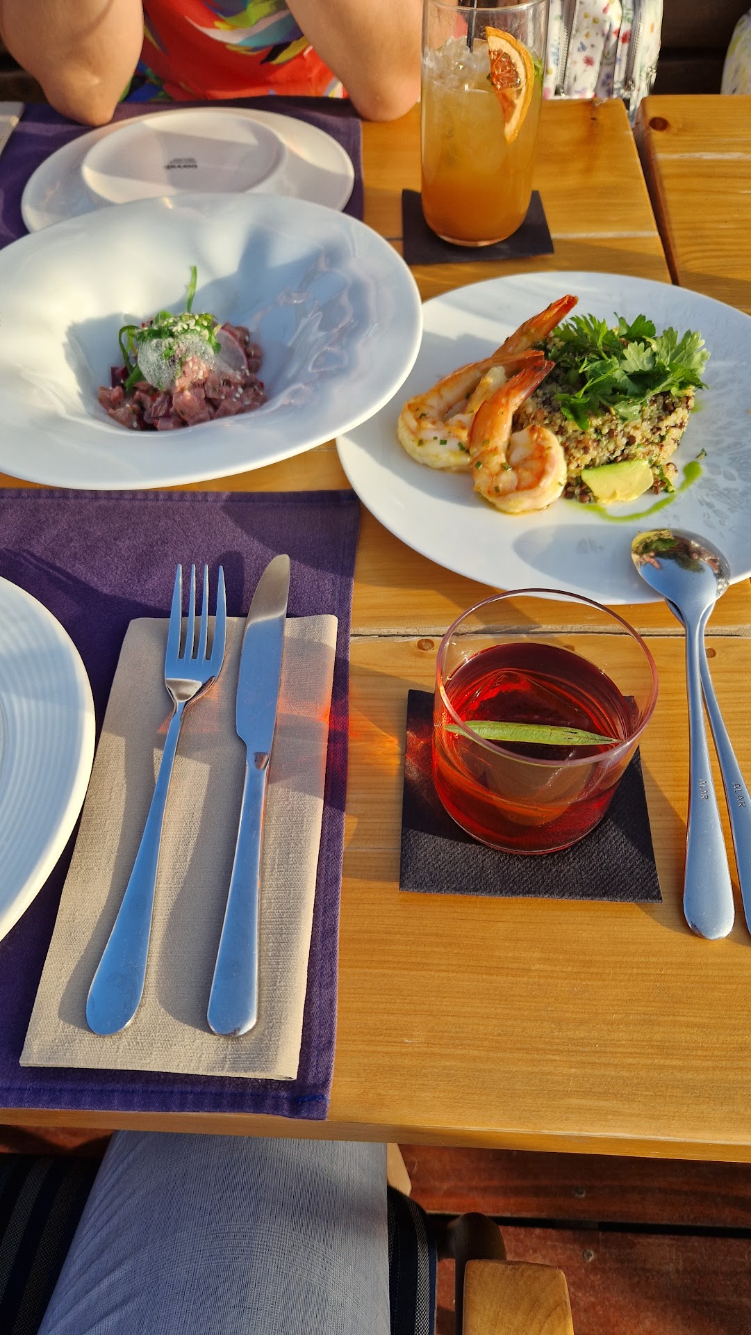 Read moreI can’t say enough about this place. The ambiance and location is simply breathtaking. I read some shady and weird reviews about the food and service, ignore them. These people don’t know what they’re talking about. My husband and I travel extensively and fine dine around the world, and also enjoy local, no fuss divey places as well. We’re all about supporting local and small businesses. And this place is a dream. The owner had a vision and he created this! And you can experience what he manifested! Also; Don’t go to a high class joint and think you’re going to eat on a budget. Don’t be stupid. Plan to splurge or don’t go at all! Seriously! I’ll tell you why. We went here twice. The first time, we drove up just to take a look and make reservations because we couldn’t get in touch with anyone. I was having issues getting a table. Underdressed, we walked up and the staff was unbelievably welcoming! They were like: please stay! Listen to some music! Have a drink! Watch the sunset! I literally had on janky sneakers and a beach dress, and my sister had on flip flops! We had been to Katishma so we were not ready to go inside. The staff were unpretentious and so welcoming, they showed us around and we ended up having drinks by the bar, watched the sunset and made reservations for dinner a few days later. Upon our second visit, we dressed up a bit and had the most perfect table. We listened to music, had the most incredible dinner (made to perfection), paired with a phenomenal bottle of wine, some noteworthy desserts and watch the sunset on top of the hills. It was amazing. Regarding the staff and service: spectacular! Well trained, organized, ontop of their game. If I lived in Lefkada, I would go here over and over again, that’s how amazing this place is. I realize it’s a bit pricy but do yourself a favor, splurge and go. It’s well worth the drive. Have a drink by the bar ;no reservations required but do dress up; don’t be a nerd like me and just show up) or go all out and reserve a table. But do GO!...