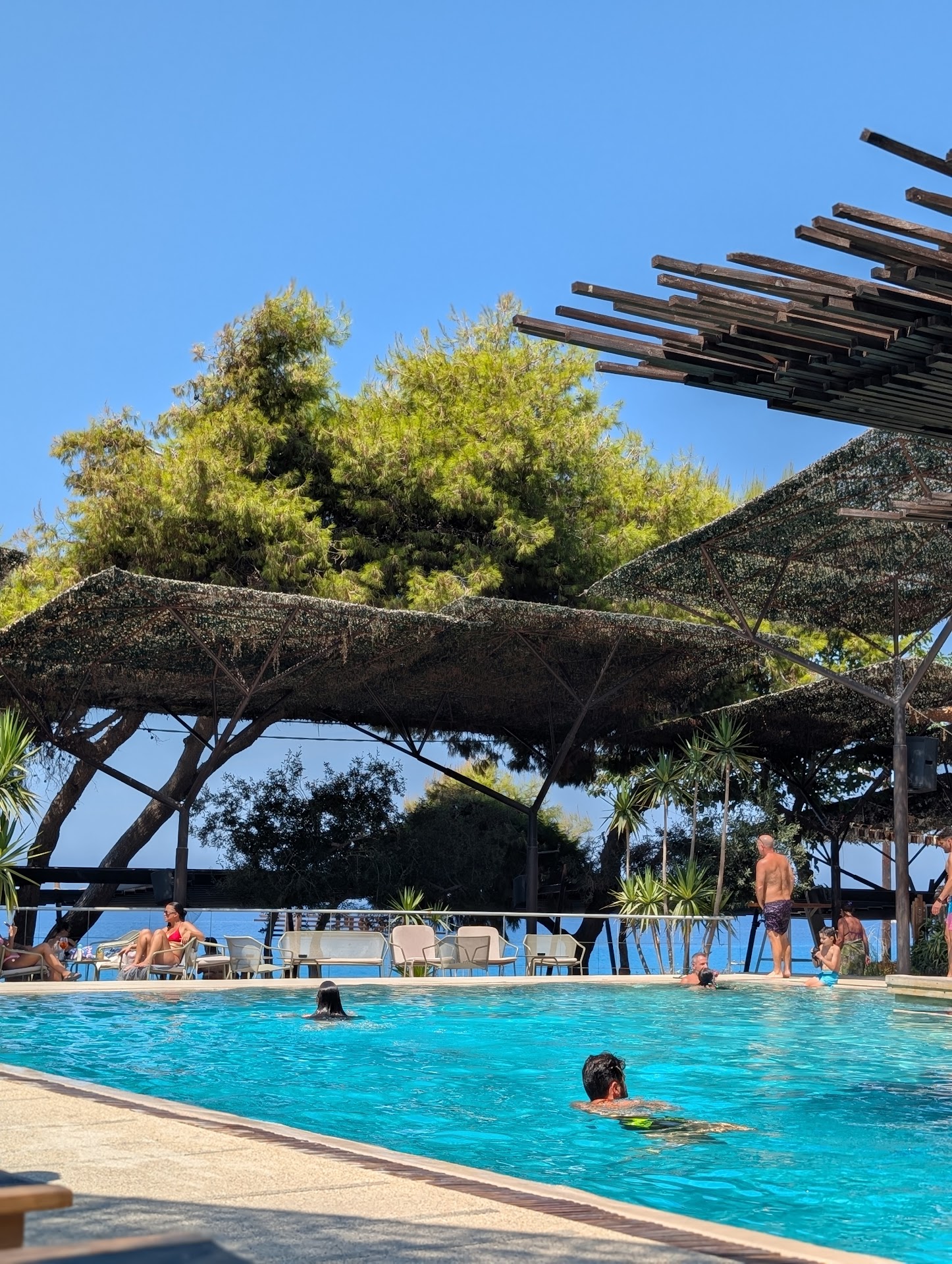 We got here at 10.15am and got one of the last set of sun loungers around the pool. But there is plenty of other seating around the pool and lots of sunbeds on the beach. We parked very close by in a carpark along the beachfront that charged 12 euros for the full day.