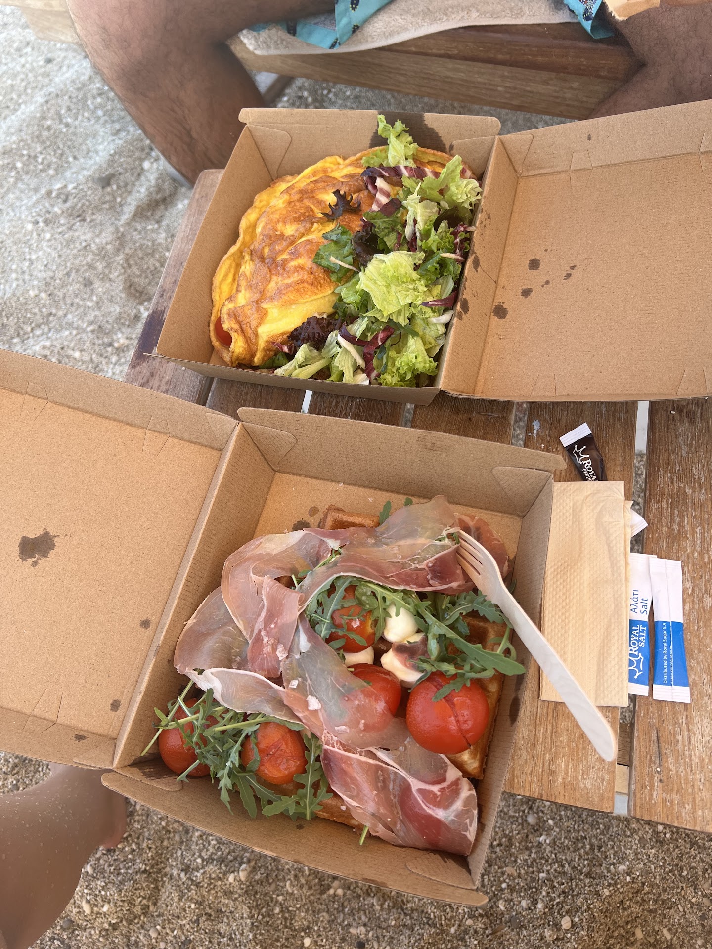 The deal was a 30 Euro minimum spend at the bar / restaurant for a pair of sunbeds by the pool, with a poolside waiter service. The food and drinks were great and reasonably priced (about £11 euro for a pizza, burger or club sandwich, 4euro for an iced cappuccino). There was also a breakfast menu offering delicious omlettes before 12.30.