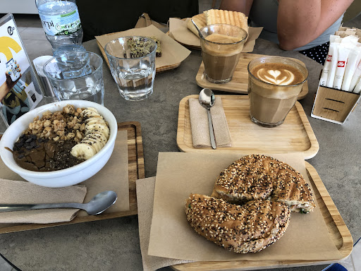 Very bad service, the waitress was rude, always on his phone and he didn’t speak English well, I choose salmon bagel he told us the salmon bagel was sold out so I choose something else (Jogurt) and my boyfriend wanted salami bagel and we ordered it. (He confirmed it). We got the Jogurt and we’re waiting for 20 minutes for the salami bagel, when I asked how is it going he told us, that it’s sold out and that the salmon one was in stock (which I wanted at first and was told it’s not in stock), HE messed up and didn’t even apologise. There were two of us of course we didn’t want only one meal… One big mess. Never again.
