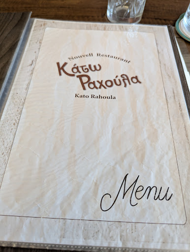 Read moreA genuine warm welcome. Not s busy night so given the choice of seats. It was ideal. We started with the most delightful garlic breads - like little buns - fused with garluc, cheese and a secret ingredient - it worked. Wonderful. Hubby chose steak - deliciously cooked served with grilled pepper, chips and an optional sauce, Val had homemade Moussaka from daily specials - hot and delicious, I chose fillet of fish from daily specials too - oven baked with potatoes+ veg, very tasty. We then ( although quite satisfied) HAD to try the homemade orange pie (cake to some of us) with ice-cream. Well us two girls ate some + hubby had a wonderous time sharing ours too. A good, friendly welcome, which made our first night out eating experience in Nidri, Greece area a great start. A great stop off for good coffee, assortment of lunch choices ir like us a great dinner venue. Remind you of the name Kato Rahoula Restaurant. Dont...