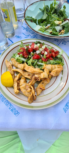 We had a definitely bad experience. Low season, so they tell us there is only greek salad, shrimps, calamari, and chicken fillet. We didn't receive any menu to check. Other people around us, only locals, received several different other dishes, which was already a bit surprising. Then we received the bill: 76€ for 2 salads (8€ each!) two portions of calamari, one of shrimps, two beers and two Tsipouros. We were a bit upset so we gently asked to see the menu cause the prices seemed a bit exagerated. the waitress told us they don't have the menu, and that the prices have changed since last year. We tried to explain our surprise in a polite way and she told us "if you think it is too much you can pay 70". Then, at the moment of paying, she said to the cook the we wanted to pay less (while she actually proposed herself, previously at the table). The guy got immediately hostile and without even asking why or what the problem was, just literally shouted at us: "Go and do this in your country!". Wow! What a gentleman, we were so astonished we just payed and went away.
