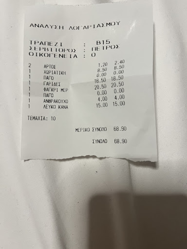 We’ve ordered Greek salad, Mussels saganaki and a risotto. I don’t recommend the mussels, they were with the shells and there were many broken shells inside, there were also many papers in the sauce. I also don’t recommend the house wine, everything else was very tasty ☺️