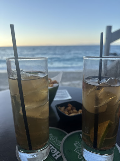 Myself & my best friend are currently sat here enjoying our last few drinks before we leave tomorrow. The hospitality overall is very welcoming however, our favourite member of staff (she will know who she is) makes an amazing frappe, a really good Long Island iced tea but her aperol spritz is to die for. The service from this lovely lady is amazing. She is so kind & attentive. All this whilst listening to a fabulous playlist & looking out on the best view from every view point in the bar. We were given complimentary sandwiches & a drink during our stay. There is a minimum 10€ per hour charge but this stops people from sitting there using the facility as a seating area for visiting the beach. You can easily spend this amount anywhere else but the views are much better and be able to use the facility for an hour or more. To those that find this a difficult thing to accept & give a poor rating...