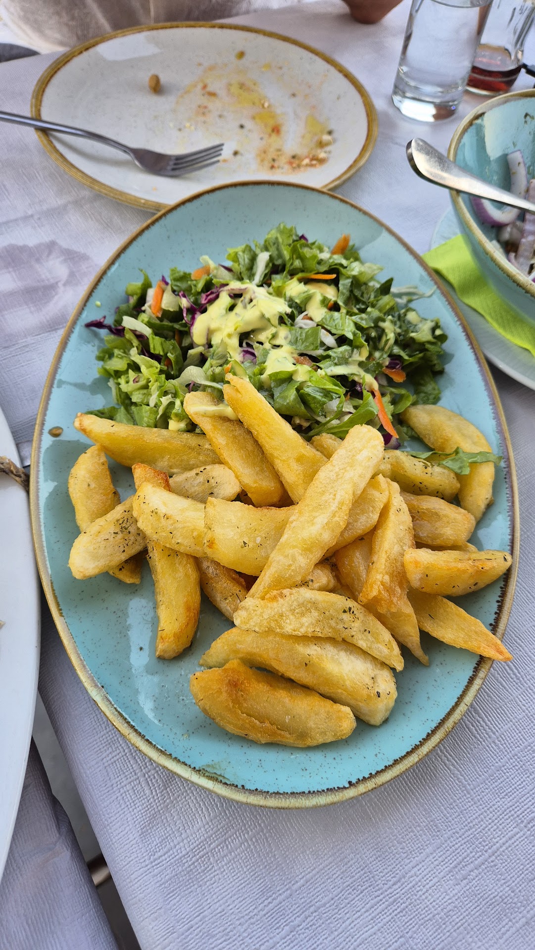 It took 2/8 days to find this place but after we found it, we ate all of our lunches there, even if it was 30 mins away of walk (one way) from our hotel The food is delicious and a plenty, the fish is fresh and the meals are cooked always in that day. you even get something from the house which is such a nice thing, but sometimes too much. Definitely try fish soup (we ordered 4 nights in a row) and the fish "gauro" (or whatever is spelled, 5 euro if i remember correctly). Also the "sea food variety for 2" is a good option, but the pasta or rissoto with shrimps or other seafood is awsome, as same as any fish dish, even dish lamb.