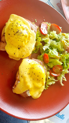 We visited Ristretto for some brunch and coffee. Unfortunately there was no space in the small alley next to the coffee place. Still sitting in front, we enjoyed the experience and food. We ordered one Eggs Benedict and one Madame Croquant - for both we waited a bit but it was definitely worth it and the place was full, so it was understandable. Eggs benedict were amazing, the hollandaise sauce was delicious and the fact the breads came with a salad made it the perfect brunch meal. Portion size was exaclty right for a brunch. The Madame Croquant was absolutely decadent and soul filling, as it should - no complaints from my boyfriend :) Coffee was actually one of the best I had in Greece so far and that's saying something after 2 weeks of being here ;) Overall great nice service, great food, just tends to get busy but...