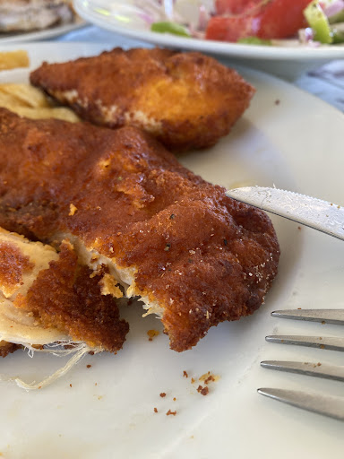Read moreBeach service was good but our experience in the restaurant was horrible. My husband asked whether there was fresh fish before we sat and he was reassured that there was only to find out that there was only farm fish after we sat down. His pork steak was decent but rather fatty. There was minimum oil in xoriatiki salad and we had to ask for more to be added. My chicken schnitzel was actually frozen and was not edible. I would not have ordered if I knew was frozen. Really poor quality of food and very expensive for the quality. We visited an Italian restaurant in Nydri in the evening of the same day where we had top quality food and service for only 5 euros extra. As a Greek who has wide experience of Ionian islands and Greek cuisine, I felt embarrassed of having taken my husband to...