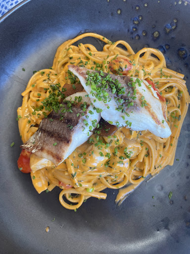 Read moreVery nice restaurant with a good view at the front line of the beach. We ordered the seafood carbonara wich came with fish and the shrimp orzo. Carbonara unfortunately was not at all carbonara, it was too sweet for my liking i feel like the sweet chili does not go well with the other components. A much simpler sauce would have been perfect. Also one of the pieces of the fish was a bit raw and undercooked on one side. The orzo however was amazing, super flavorful and tasty, with fresh tomato sauce and spring onion and fresh shrimp, if I could I would eat this every day. Another thing is that if you sit in front of the restaurant on the outside tables you would not get noticed as it turns out this is not for dining but just...