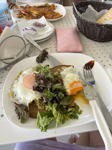 We came here for breakfast and ordered avocado toast(12€) and special omelette(9€) with toast by side. The host was talking in Greek while taking our order which was very unpleasant as we didn’t understand a word. The toast came first, then after few minutes of waiting avocado toast came. We were waiting around 5 more minutes for omelette to come. Eggs on toast was running, and the lettuce as a side was a bit saggy, on the other side omelette was overcooked. Because of the waiting for omelette, avocado toast and toast was also cold....