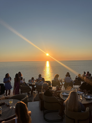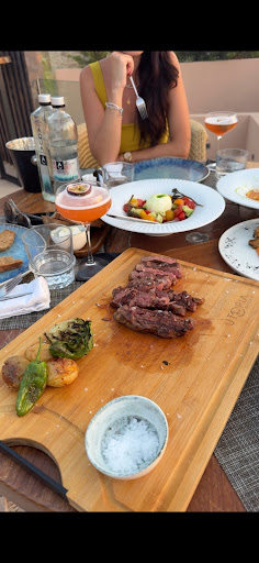As for the drinks and food - the cocktails were colorful but barely had any alcohol. The food was bland and extremely overpriced. My two kids ordered the ribeye steaks which were only tendons and fat (that's what you get for €75 each!). My son spit out half of his, as he couldn't chew it and my daughter had to return hers to be cooked further as it was dripping in blood and she had ordered medium.