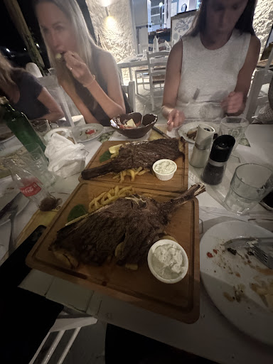 Hit and Miss. I take an opposite view to the majority of the reviews for this restaurant. We visited as a group of 10. Great beach side location with stunning views across the water to the mainland. The menu, when compared to many other places we’ve visited, is limited, but offers meats, salads and seafood. To the food. The big hit was the 500 gram pork steak, brought the table on a frame, overhanging the plate generously loaded with chips. And a shout out for the linguini bolognaise and the aubergine saganaki, both rated as very tasty and good value. The Misses. Skip the chicken fillet. Dry and tasteless. And for a restaurant next to lapping waves, the seafood dishes were a major disappointment. The mussels were over salted, failing to please. But the biggest disappointment was the grilled octopus; three legs chargrilled to the point of bitterness, on a plate with a single lettuce leaf and a slice of lemon. That was it. For 20 euros. I talked with the waiter about the dish and the value. He claimed it was a good price, but for me, he'd make it four pieces. The dish was taken away. 15 minutes later a new plate arrived, with 3 pieces, not the 4 offered. It’s unlikely I’ll ever pass by this way again. If I do I’ll be finding somewhere...
